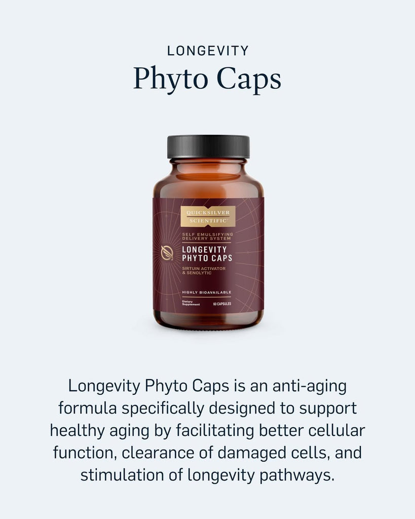 Longevity Phyto Caps is an anti-aging formula specifically designed to support healthy aging by facilitating better cellular function, clearance of damaged cells, and stimulate longevity pathways. Each two-capsule serving provides a curcuminoid complex, quercetin, resveratrol, and trans pterostilbene in our highly bioavailable SEDS delivery technology for fast and efficient absorption of ingredients. *