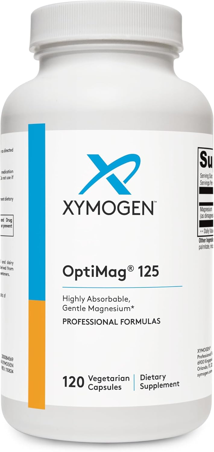 Magnesium, the fourth most abundant mineral in the human body, plays a role in over 300 metabolic processes. It participates in the development and maintenance of bones and teeth; the metabolism of carbohydrates, blood glucose, fats, and proteins; the formation of cells and tissues; and the maintenance of muscle function, including cardiac muscle. OptiMag® 125 contains Albion®’s TRAACS® magnesium lysinate glycinate (mineral amino acid chelate) and Albion’s chelated dimagnesium malate—both formulated for enhanced absorption. Malic acid (from di-magnesium malate) supports energy production and lactic acid clearance via the Krebs cycle. Malic acid may also support antioxidant systems by enhancing glutathione and antioxidant enzymes.*