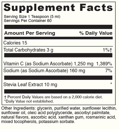 Easily absorbable form of Vitamin C in vegetarian, citrus-free liquid that supports immune health, collagen production and free radical protection.*