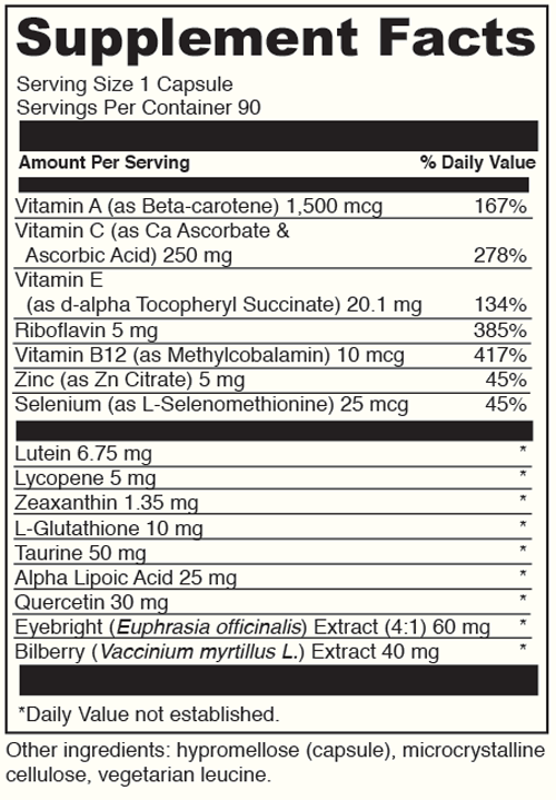 Optimal vision formula contains 16 ingredients including lutein, lycopene and zeaxanthin to support ocular health and function.