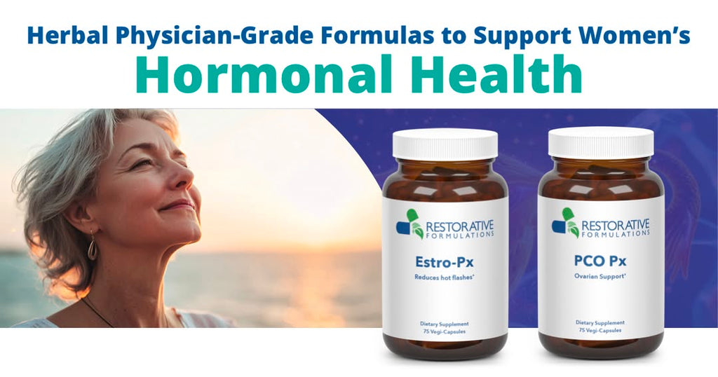 Estro-Px provides comprehensive herbal support during times of rapid hormonal changes, such as the menopausal transition. This unique combination of herbal extracts contains high levels of phytoestrogens, naturally occurring plant substances that bind to estrogen receptor sites and promote estrogen-like activity. In addition, this formula has uterotonic properties and can help to maintain healthy prolactin and progesterone secretion. The formula combines rosmarinic acids, polyphenols, phytoestrogens and angusides, which act synergistically to reduce hot flash frequency and intensity. Sage (Salvia officinalis) provides the added benefit of protecting memory, by inhibiting acetylcholinesterase (AChE) enzymes.*