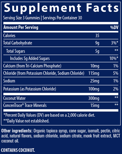 Electrolyte Stamina Gummies are a delicious and easy way to provide your body with more electrolytes. When you sweat during exercise or strenuous physical activity, your body is depleted of electrolytes. Replenish your body with electrolytes to maintain energy, avoid sluggishness, and prevent dehydration.*