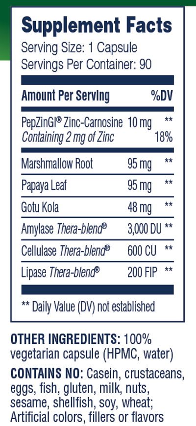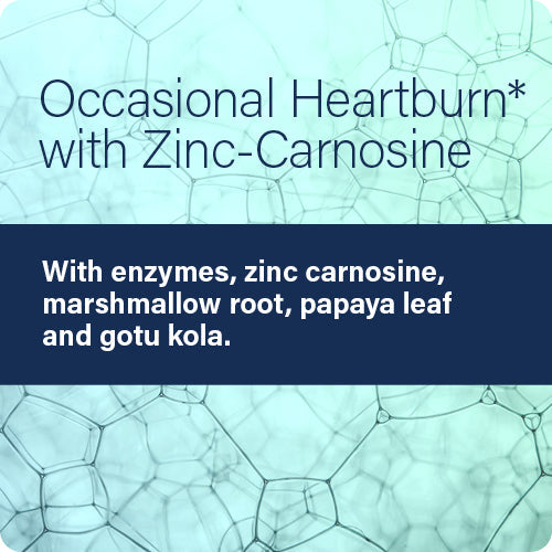 Acid Calm™ supports those who experience occasional heartburn by helping to better digest problem foods, while also providing long-term support for the function of the GI system.* Zinc carnosine is included to optimize the mucosal lining of the stomach, acting as a buffer to gastric acid.*