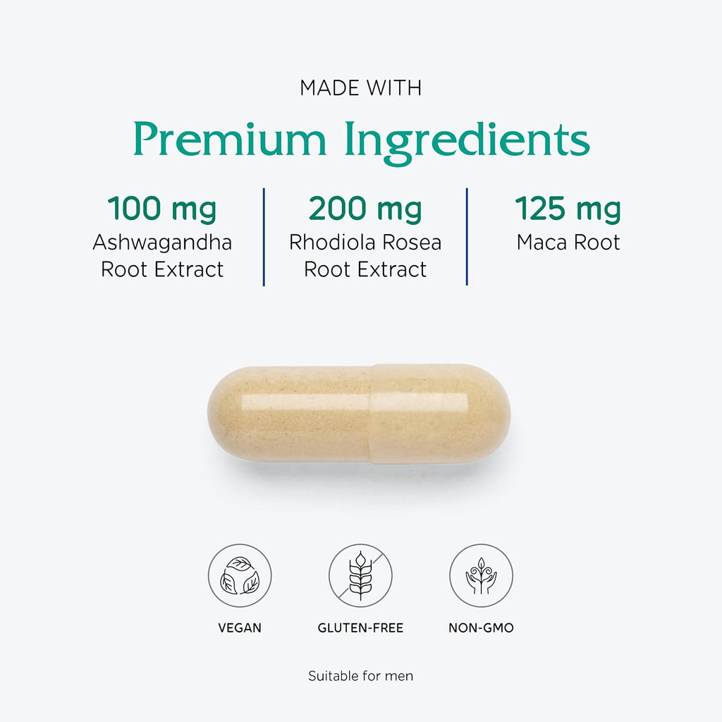 - Promotes enhanced resistance to stress with tonic and adaptogenic herbs: Eleutherococcus, American ginseng, Rhodiola, and Ashwagandha.*