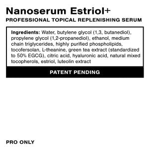 Professional Estriol+ Topical Replenishing Serum is a nanoemulsified topical serum providing 0.5 mg of bioidentical estriol (E3) per 1 pump dose. Our estriol is derived from phytosterols, natural compounds used to synthesize bioidentical estrogens.