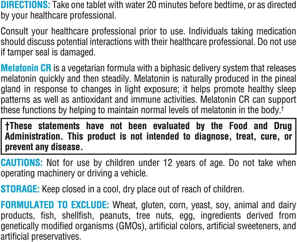 Melatonin CR is a vegetarian formula with a biphasic delivery system that releases melatonin quickly and then steadily. Melatonin is naturally produced in the pineal gland in response to changes in light exposure; it helps promote healthy sleep patterns as well as antioxidant and immune activities. Melatonin CR can support these functions by helping to maintain normal levels of melatonin in the body.*